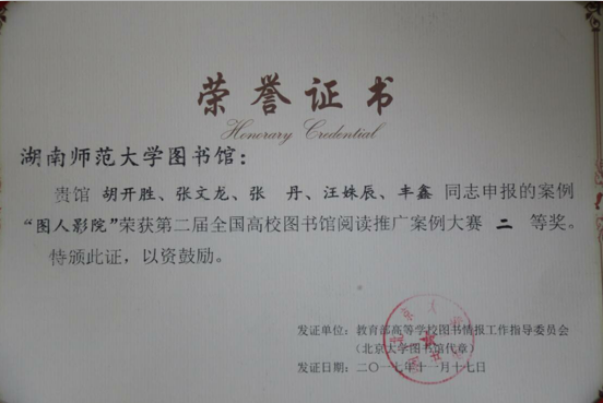 11月16日,第二屆全國高校圖書館閱讀推廣案例大賽在遼寧大學落下帷幕,湖南師范大學圖書館的參賽案例“圖人影院”項目經(jīng)過多輪激烈角逐獲得二等獎殊榮。