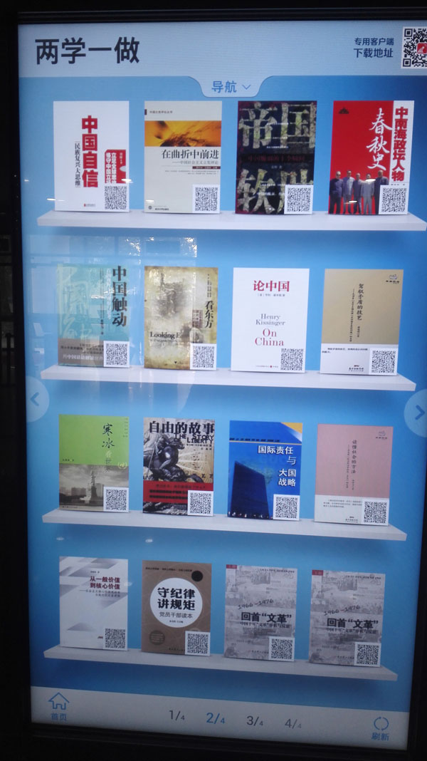 北京農(nóng)學(xué)院圖書館 2016年5月18日在圖書館在一層大廳設(shè)置了“兩學(xué)一做”圖書專架,陳列了系列相關(guān)書籍,供我校師生借閱、學(xué)習(xí)。但由于復(fù)本有限,不能滿足所有讀者的借閱需求。為了解決這一矛盾,同時(shí),也為了滿足部分讀者喜歡閱讀電子書的習(xí)慣,北京農(nóng)學(xué)院圖書館在圖書館大廳的歌德電子書借閱機(jī)上新增了“兩學(xué)一做”電子書專欄。讀者只要通過掃描二維碼下載電子圖書,就可以不受時(shí)空限制進(jìn)行閱讀了。