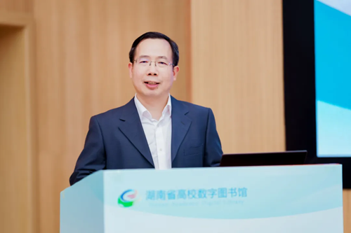 謝資清代表湖南師范大學(xué)對(duì)與會(huì)的領(lǐng)導(dǎo)、專家及來賓表示熱烈歡迎,并介紹了學(xué)校的基本情況。她指出,在省教育廳、省高校圖工委、各成員高校的大力支持及共同努力下,高數(shù)圖項(xiàng)目成功輻射全省39所本專科院校,為百萬師生提供堅(jiān)實(shí)的文獻(xiàn)信息保障,成為全省高校教學(xué)科研工作的重要公共服務(wù)基礎(chǔ)設(shè)施,有效支撐了我省高等教育的高質(zhì)量、內(nèi)涵式發(fā)展。她表示,高數(shù)圖將繼續(xù)服務(wù)教育數(shù)字化發(fā)展戰(zhàn)略,為高等教育高質(zhì)量發(fā)展賦能增效。