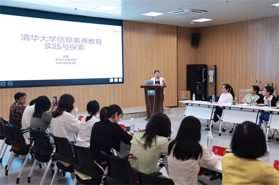 聘任儀式后,清華大學(xué)圖書(shū)館王媛老師帶來(lái)題為《清華大學(xué)信息素養(yǎng)教育實(shí)踐與探索》專(zhuān)題報(bào)告,她從歷史回顧、環(huán)境掃描、教學(xué)實(shí)踐、典型案例等方面分享了清華大學(xué)在信息素養(yǎng)教育方面的成功經(jīng)驗(yàn)。交流環(huán)節(jié),王媛老師與講師團(tuán)成員進(jìn)行深入互動(dòng),共同探討了信息素養(yǎng)教育實(shí)踐中遇到的問(wèn)題和應(yīng)對(duì)措施。